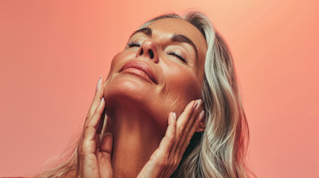 I love my skincare products. Mature woman in her 50s closing her eyes and relaxing after doing her healthy skin care routine