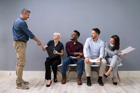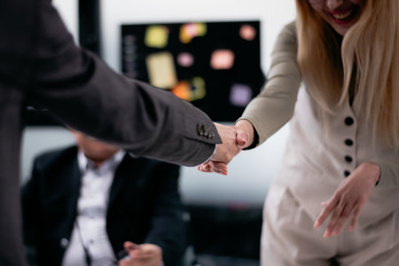 Close-up Of An Applicant Shaking Hand With Corporate Recruitment Officers In Office