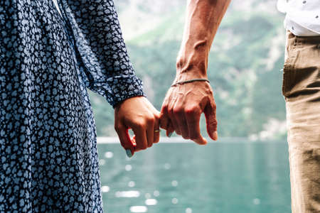 Couple in love romantic relationship. Sweethearts holding hands on a date. Happy together