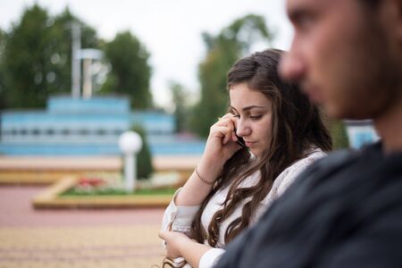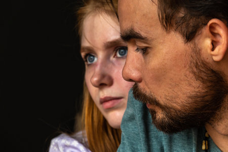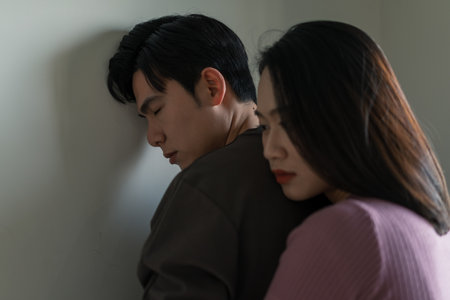 Depression and sadness concept. Unhappy depressed couple after argument. Sad woman and disappointed man standing together.