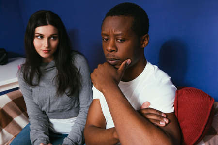 Couple White Woman Black Man Interracial Think Future Serious Plans Thoughtful Concept