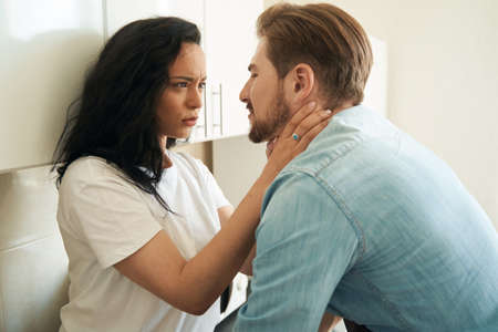 offense, young family in conflict, man and woman angry against each other, problem