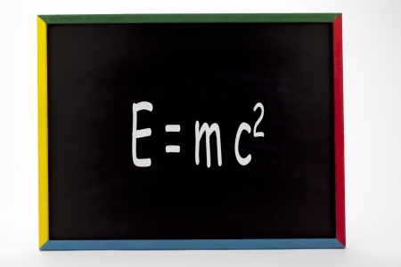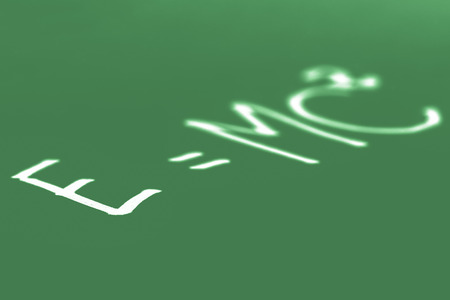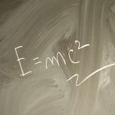 E=mc2. Theory of relativity, writings on blackboard.