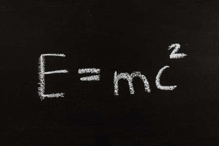 E=mc2. Theory of relativity written on a chalkboard
