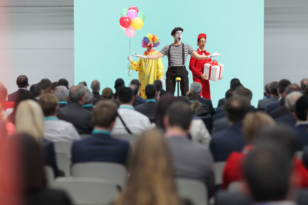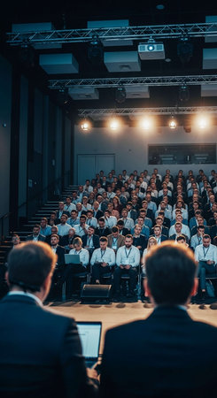 People attend business conference in the congress hall