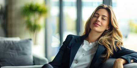 Portrait of a beautiful businesswoman relaxing in a modern office.