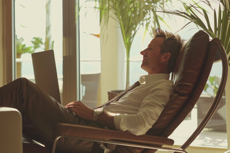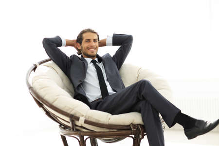 successful businessman sitting in a large comfortable chair