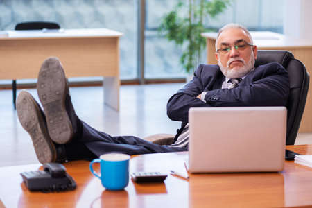 Old businessman employee working in the office