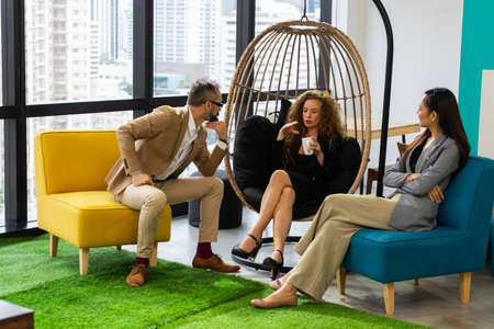 Group business having fun and laughing talk about business. Coworkers team working new startup project at modern office. Business people . Business meeting concept.