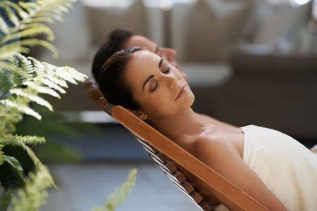 Synchronized harmony in luxury. High angle shot of a couple enjoying a hot stone massage.