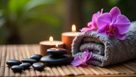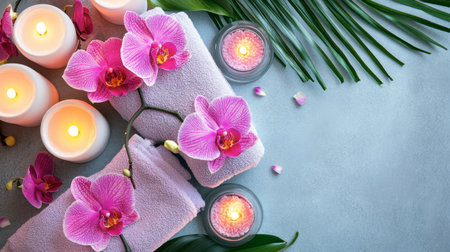 Elegant Spa Scene with Pink Towels and Orchid Blossoms