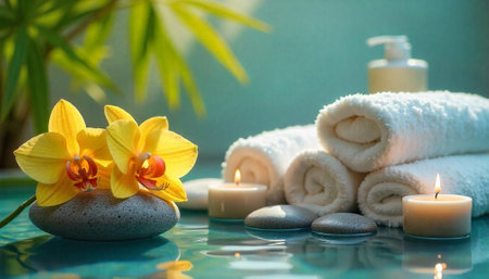 Spa Wellness with Yellow Orchids and White Towels Scene