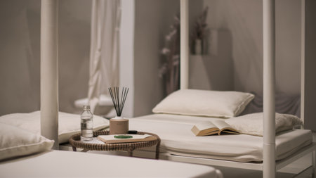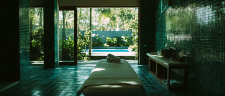 Tranquil spa with empty massage table inviting relaxation and wellness experiences