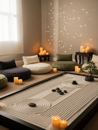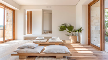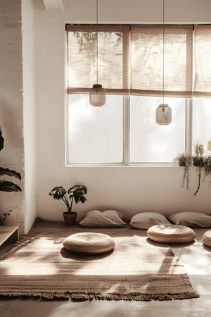 a room with serene peaceful ambiance for health meditation style inspiration
