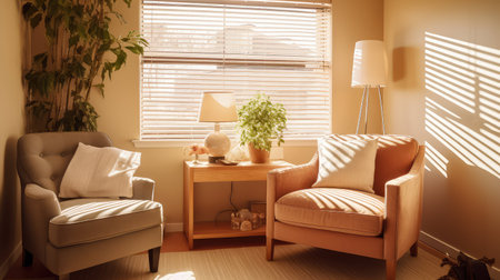 Warm blurred therapy space with cozy furniture and soft decor