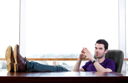 Young trendy man with his feet on a desk