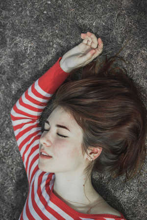 young or teenage student lying in the field
