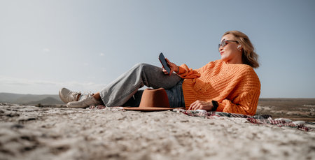 Woman Relaxing on a Mountaintop with a View