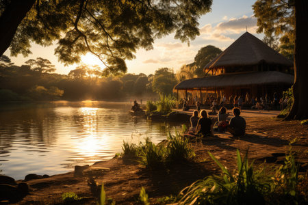 person view couple resting at camping woman laying in hammock with beautiful view of forest lake