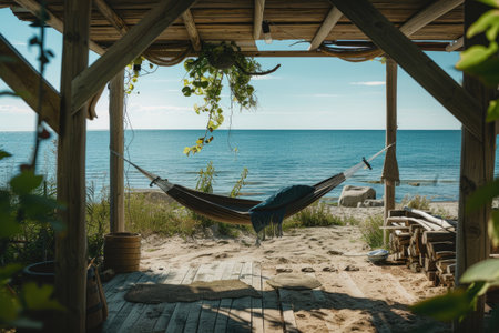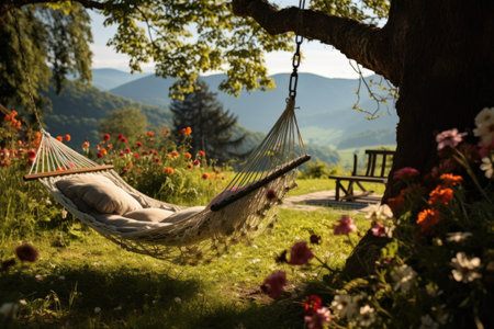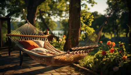 Resting on a comfortable hammock, enjoying the tranquil outdoors generated by artificial intelligence