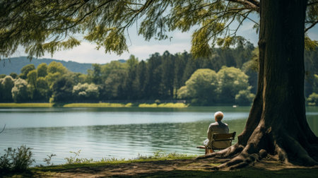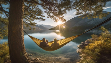 relaxing hammock, with view of the tranquil lake, and gentle breeze, created with generative ai