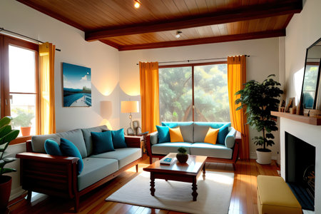 A stylish modern living room interior design with vivid and warm tone colors in the apartment. Generative AI AIG27.