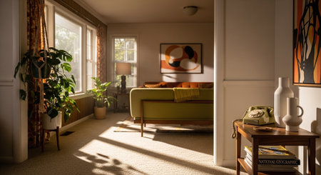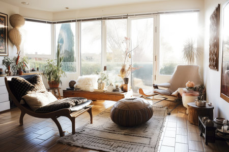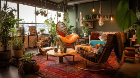 bohemian home with eclectic mix of vintage and modern furnishings, created with generative ai