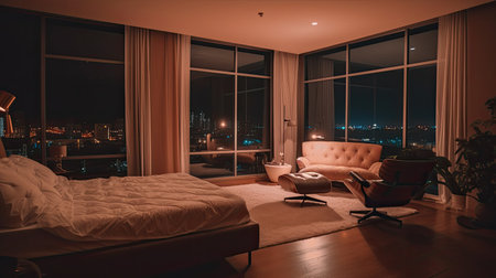Modern luxury apartment with comfortable furniture, elegant design and lighting generated by artificial intelligence