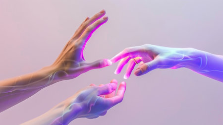 Glowing Hands Reaching Out, Touching, Connection, Energy Transfer, Futuristic Concept
