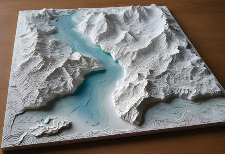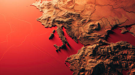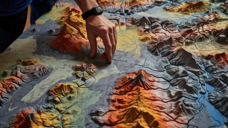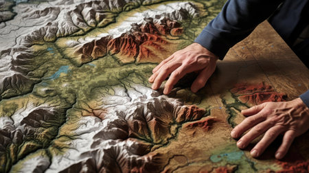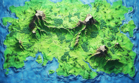 Topographic relief map showcases mountains and rivers, highlighting cartography and topography. Ai Generated