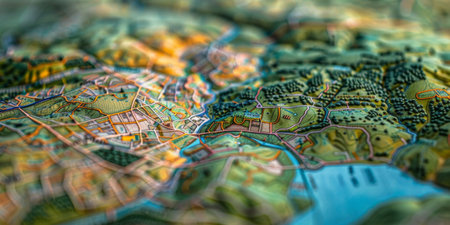Close up of a topographic map highlighting detailed terrain features and landmarks with clarity