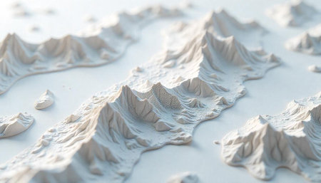 Topographic Mountain Range Relief Map in Light Gray Tones