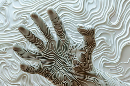 A close-up view of a textured white surface featuring smooth, flowing patterns and undulating lines, creating an artistic and minimalistic backdrop for various design projects.