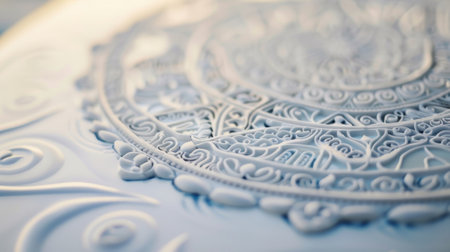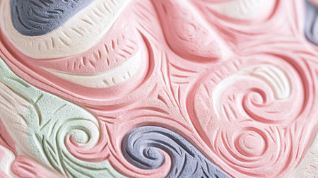 A detailed pattern features swirls and curves in various pastel colors showcasing craftsmanship and artistic creativity in a unique design.
