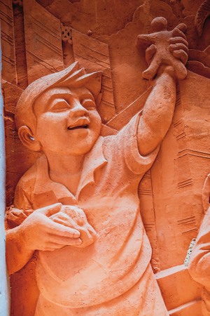 Dancing sculture on the wall at the Lianhua mountain park in shenzhen,China