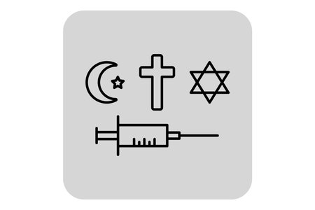 Interreligious symbols on a medical mask. Christianity, Islam, and Judaism.