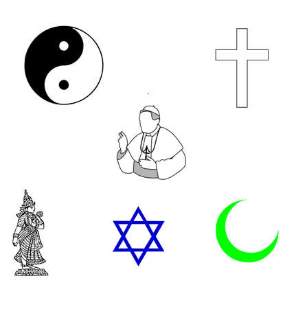 Religious symbols. Christianity, Islam, Judaism, Buddhism and Hinduism. Interfaith dialogue. France.