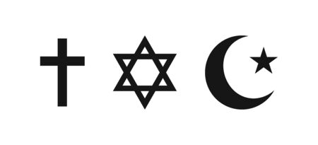Three religions vector icon isolated on white background. Christianity, Judaism and Islam. Worship christian religion. Religions in flat style.