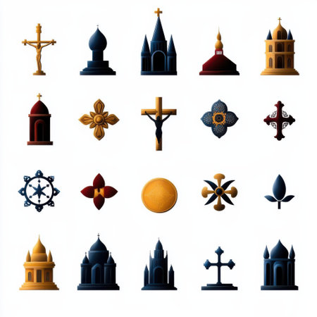 A visually appealing arrangement of religious symbols and icons, showing cultural diversity and spiritual themes, designed for artistic and educational purposes