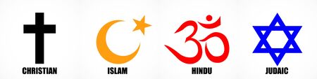 Set of World religion symbols - Christianity, Islam, Hinduism and Judaism. Vector illustrator