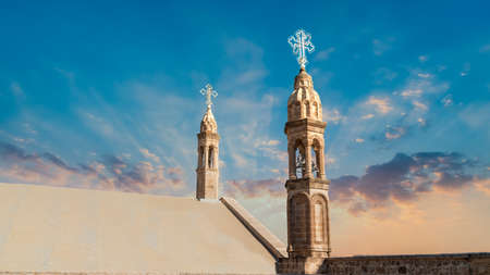 Midyat, Mardin, Turkey - January 2020: Architectural details of Mor Gabriel Deyrulumur Monastry. It is the oldest surviving Syriac Orthodox monastery in the world.