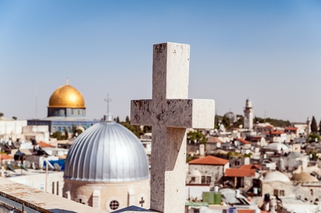 The cross on the background of Jerusalem Old City