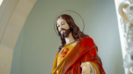 Statue of Jesus in the church stay near the wall