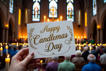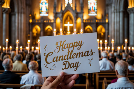 AI Generative Candlemas Day postcard, people celebrating tradition holiday in Christian church