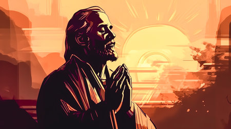 Close-up of Jesus Christ praying to his Father in heaven