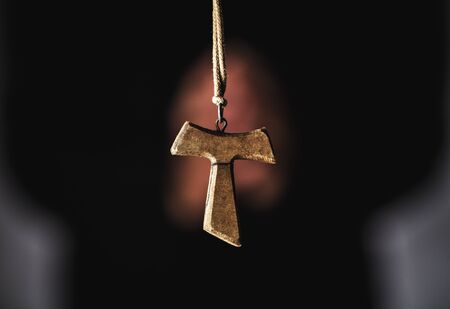 Christian cross necklace on Holy Bible book, Jesus religion concept as good friday or easter festival