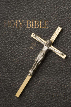 Christian cross necklace on Holy Bible book, Jesus religion concept as good friday or easter festival