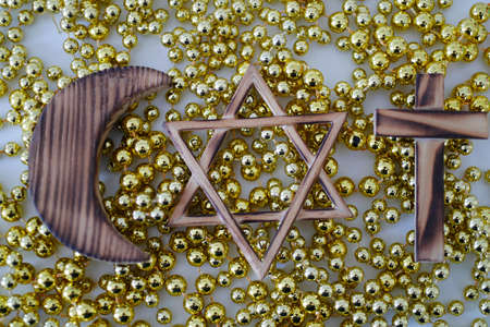 Christianity, Islam, Judaism 3 monotheistic religions. Jewish Star, Cross and Crescent: Interreligious symbols.