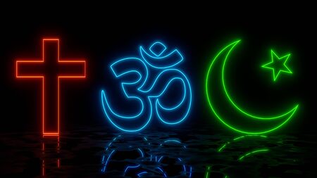 Glowing religious symbols abstract concept. Made with 3d rendering...