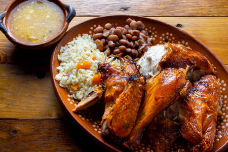 typical portuguese dish boiled meat, smoked sausages and vegetables